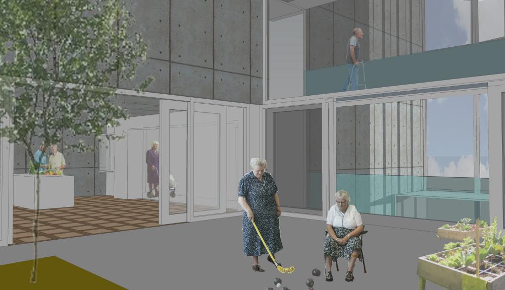 Door het wijzigen van de regelgeving in de Zorg, het scheiden van wonen en zorg, dreigt een groot deel van het zorgvastgoed op termijn leeg te komen staan. Habion, een organisatie met veel vastgoed in de ouderenhuisvesting en verzorgingstehuizen, heeft een aantal studenten Van de academie van bouwkunst in Amsterdam gevraagd om een studie te doen naar de mogelijkheden van de toekomst van dit vastgoed. Habion heeft specifiek studenten betrokken bij de studie omdat wij met een frisse blik naar de gebouwen kijken. Al het vastgoed is gebouwd in een bepaalde periode en vaak met een zelfde soort benadering. Hierdoor lijken ze allemaal vaak op elkaar en hebben ze ook vaak dezelfde soort problemen en kansen.
